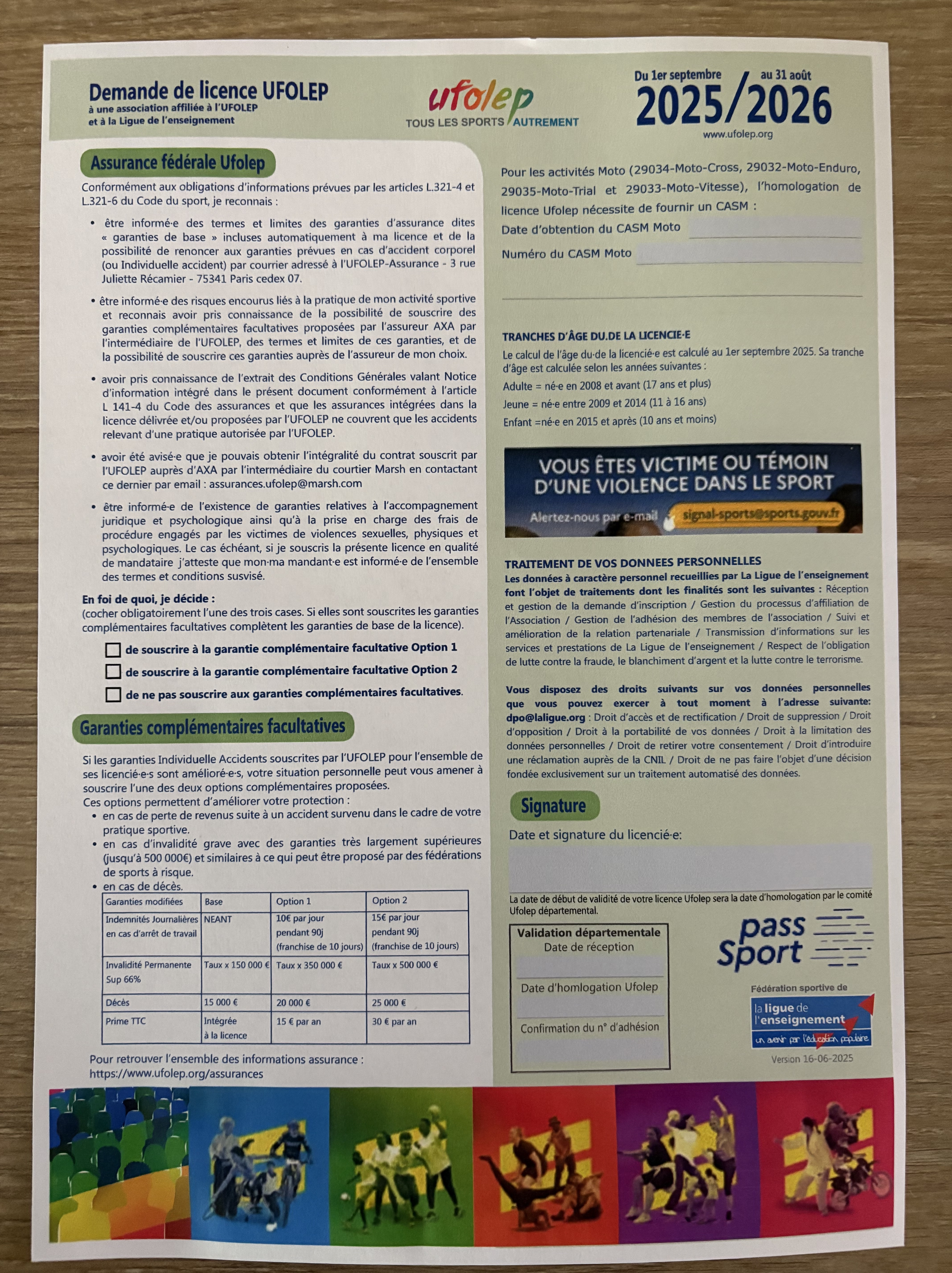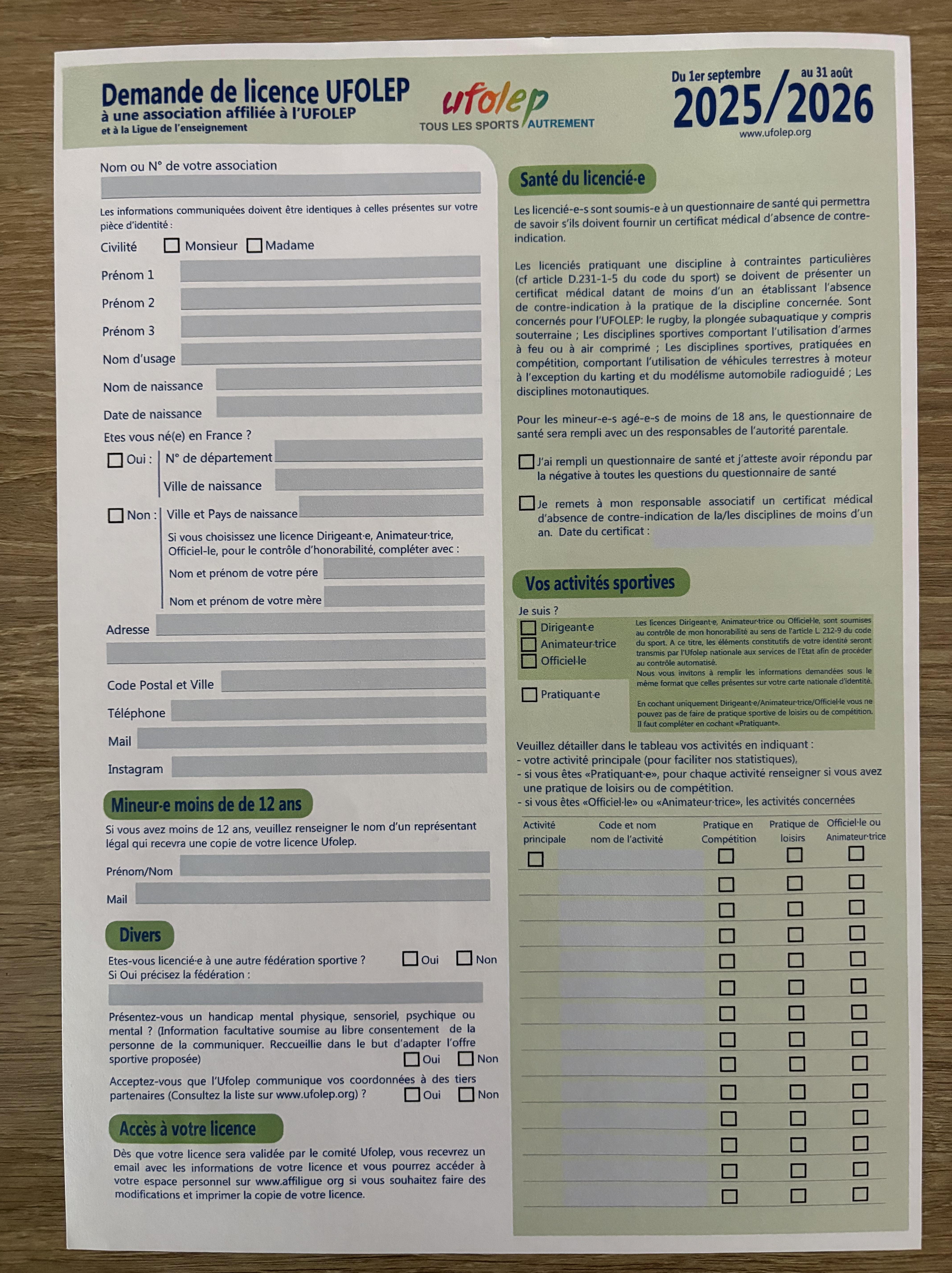 - ASSURANCE fédérale UFOLEP : ne pas remplir (vous serez assuré en prenant la licence)